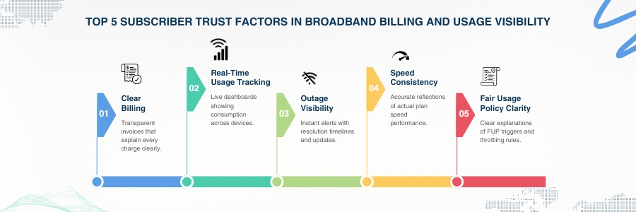 A McKinsey study on personalization reinforces this behavioural trend. The research states that 71 percent of consumers expect companies to deliver personalized and relevant interactions, and 76 percent feel frustrated when they do not. Although the study focuses on personalization across industries, the insight translates directly into the broadband context. When customers demand personalized clarity, they also expect transparent billing, usage visibility, and proactive communication from their ISP. Because customers crave control and contextual information, transparency has become a defining element of customer experience for broadband providers, shaping loyalty and long-term trust across competitive markets.