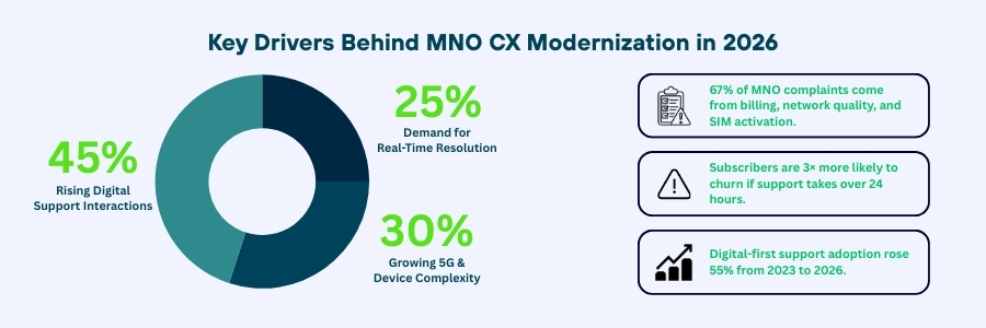 Customer experience has become the strongest competitive lever in the telecom industry, and 2026 marks the year when operators move from reactive customer service to intelligent, predictive experience management. With digital adoption rising, switching becoming effortless, and customer expectations shaped by OTT-grade responsiveness, the traditional support model is no longer enough. MNO customer support solutions have become central to the way operators design, deliver, and control subscriber interactions, influencing everything from loyalty to ARPU.